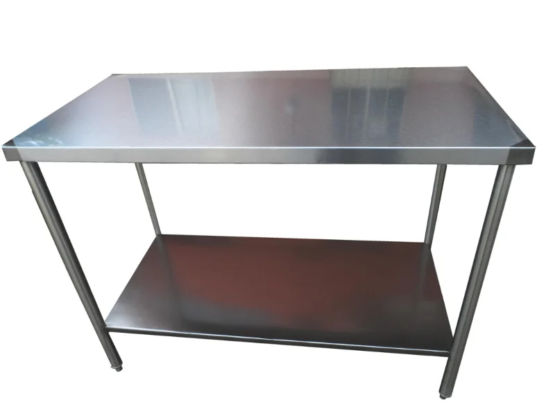 Mesas de trabajo tipo isla con entrepao en acero inoxidable